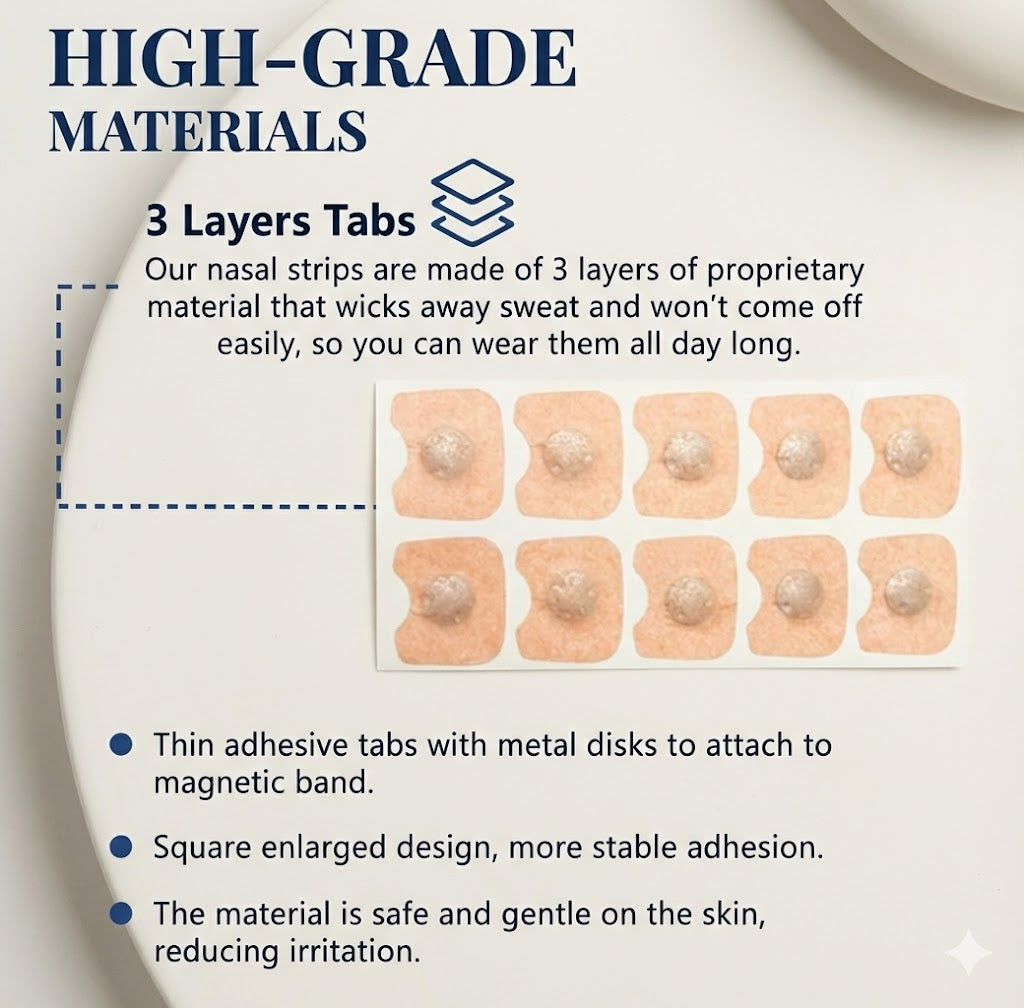 4x Magnetic Nasal Dilators: These discreet clips gently widen the nostrils to instantly increase oxygen intake. Embedded with therapeutic magnets to stimulate sensory nerves for smoother airflow.
